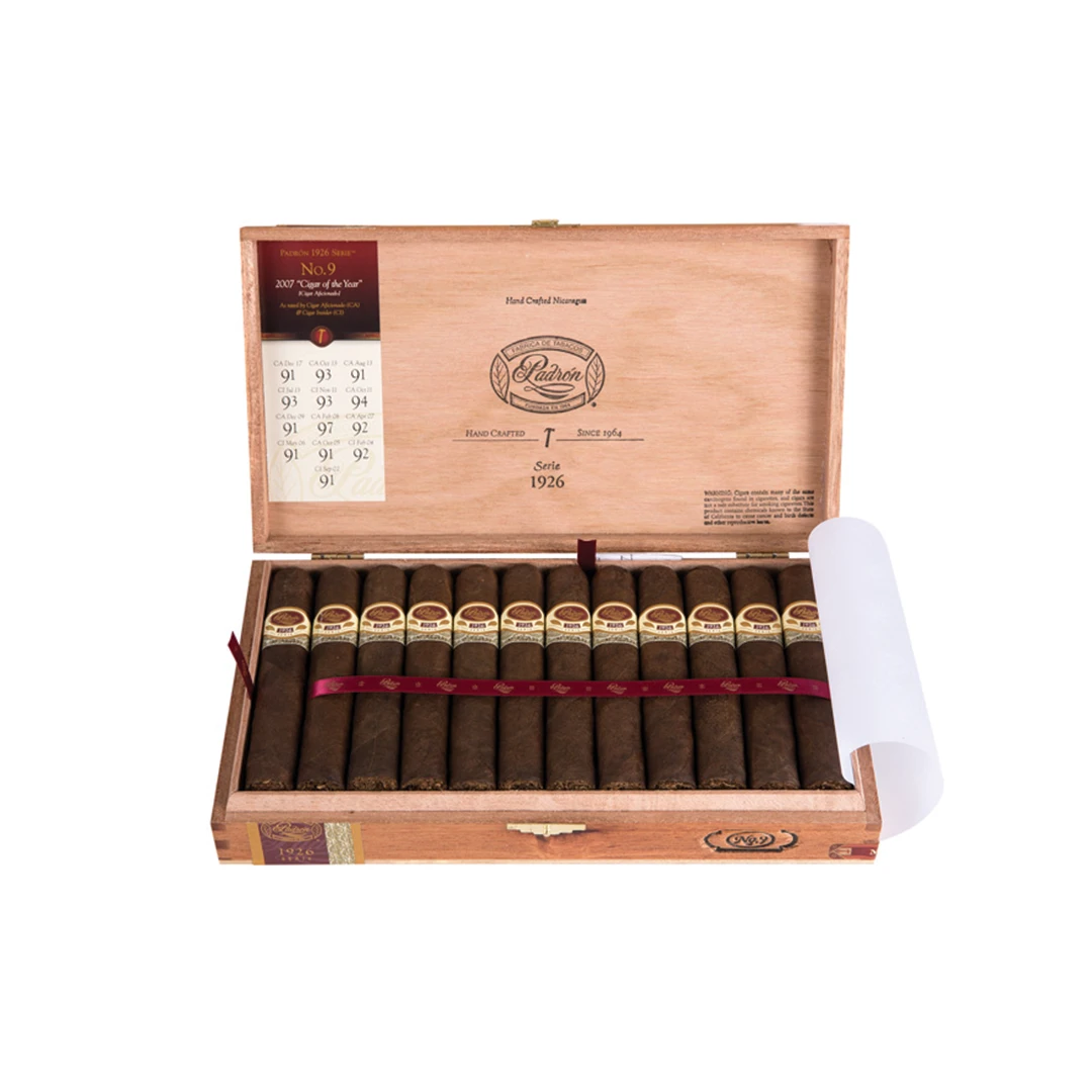 The 1926 Serie premiered in 2002 to commemorate Jose O Padron’s 75th birthday. The refined tobacco is aged five years then blended to create an exceptionally smooth, complex, blalnced and full bodied flavour. Continuing Padron tradition, the 1926 Serie is offered in a box pressed format. In 2007, the 1926 No 9 Maduro was named Cigar of the Year by Cigar Aficionado, the second time Padron had received this accolade.